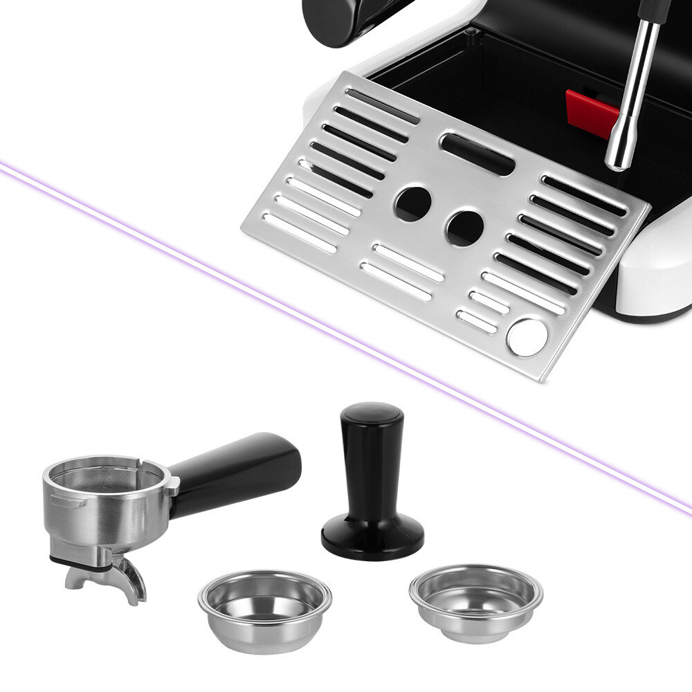Кофеварка КТ-7169 поможет приготовить эспрессо, капучино или латте, а также множество других видов кофе на ваш вкус. С помощью стимера вы можете приготовить молочную пенку, а также подогреть паром остывший чай или молоко. Ключевым отличием кофеварки от всех остальных кофеварок, турок и прочих кофейных устройств является наличие рожка, его часто называют холдер. Молотый кофе помещается в фильтр рожка и прессуется в таблетку. Процесс трамбовки также называют темперовкой. Темпер, поставляемый в комплекте, поможет утрамбовать в рожке кофейную таблетку. Молочную пенку для капучино можно делать самостоятельно. Для приготовления пара и горячей воды в кофеварки есть паровая трубка – стимер. Металлический фильтр с лазерным нанесением отверстий долговечен и не требует использования каких-либо расходующихся частей. Кофеварка оснащена съемным резер…