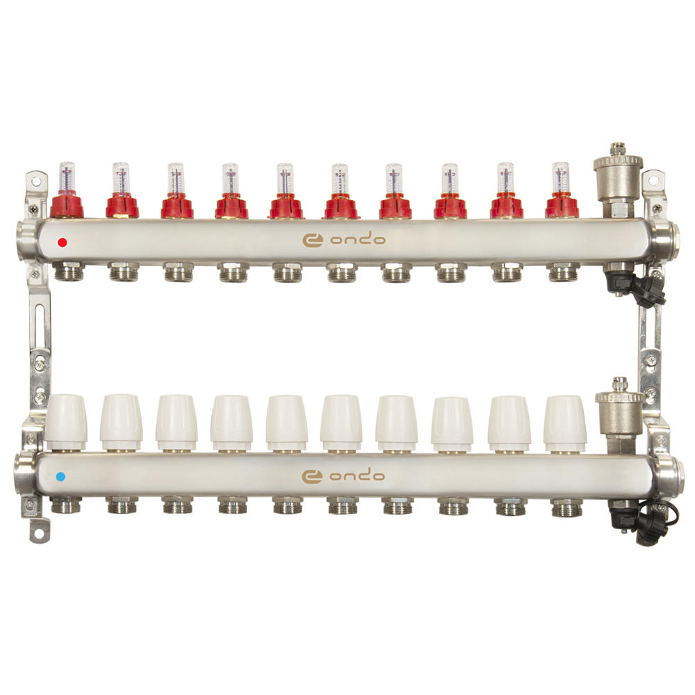 Коллекторная группа с расходомерами Ondo 1 ВР(г) х 10 выходов 3/4 НР(ш) ЕК х 1 ВР(г)
