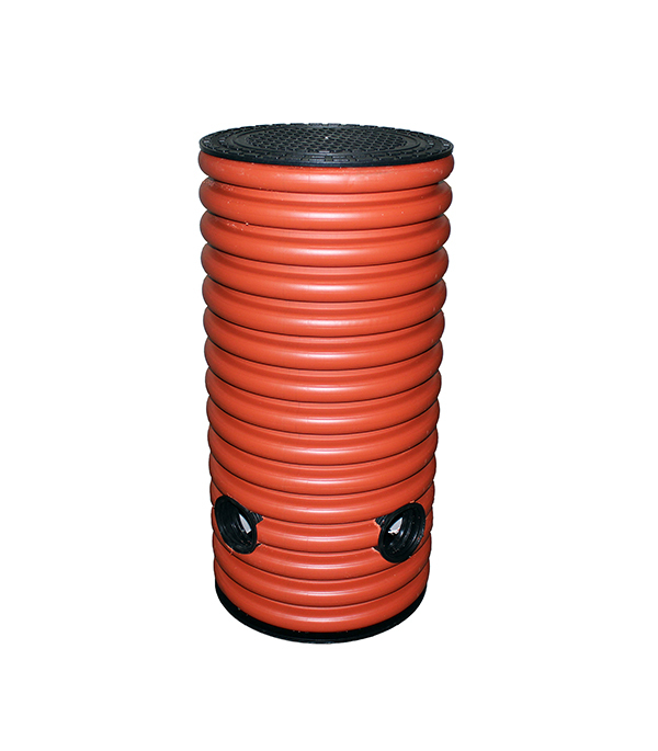 Колодец дренажный смотровой 500/435х1000 мм с тремя отводами 110 мм с дном и крышкой