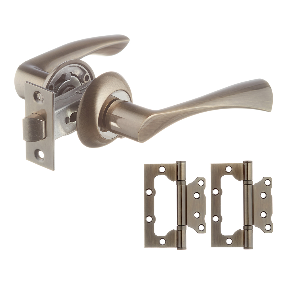 Комплект фурнитуры для двери Corsa Deco Willow с защелкой и петлями круглая розетка античная бронза