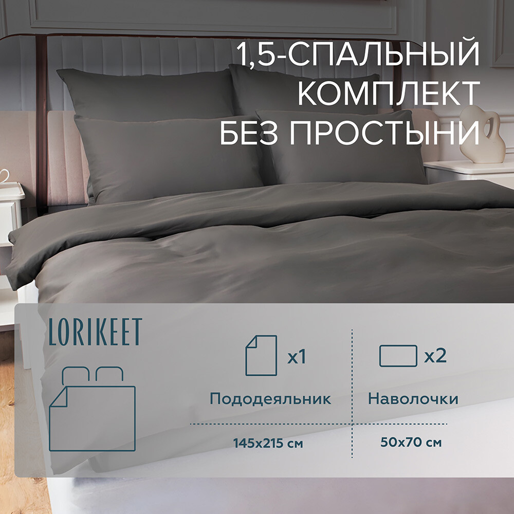 Комплект постельного белья 1,5-спальный сатин Lorikeet Solo графит без простыни