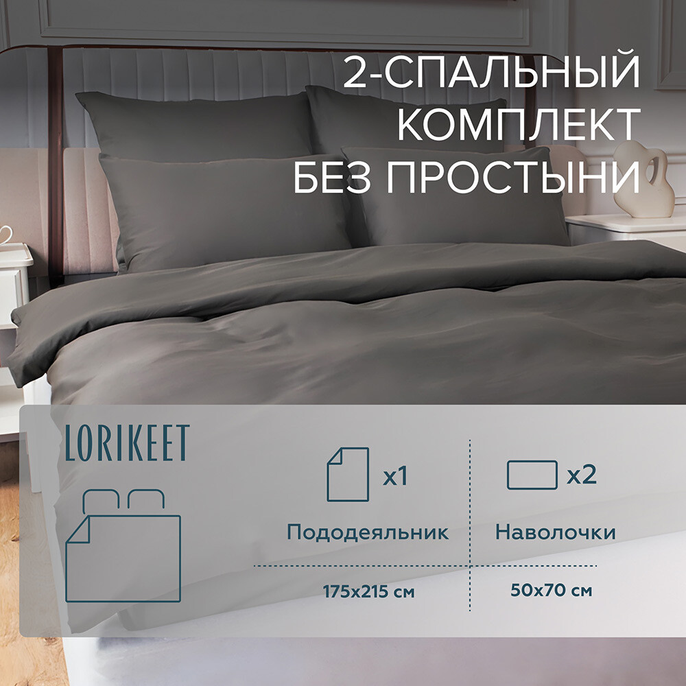Комплект постельного белья 2-спальный сатин Lorikeet Solo графит без простыни