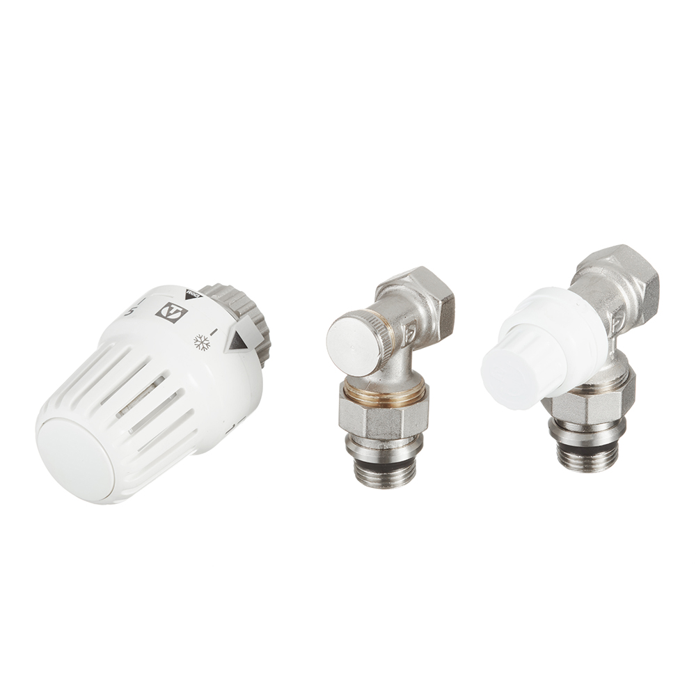 Набор предназначен для бокового подключения прибора водяного отопления, автоматического регулирования расхода теплоносителя через него в зависимости от температуры воздуха в помещении, гидравлической балансировки системы отопления. Клапаны выполнены из качественной сантехнической латуни с гальваническим покрытием и оснащены самоуплотняющимися полусгонами.