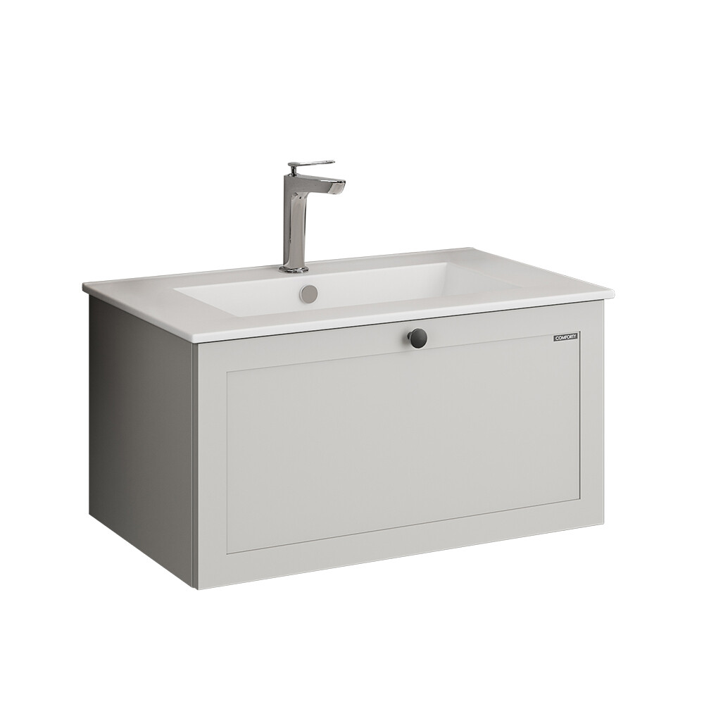 Комплект тумба с раковиной Comforty Моа 80 см подвесная серый шелк (00-00021212CF)
