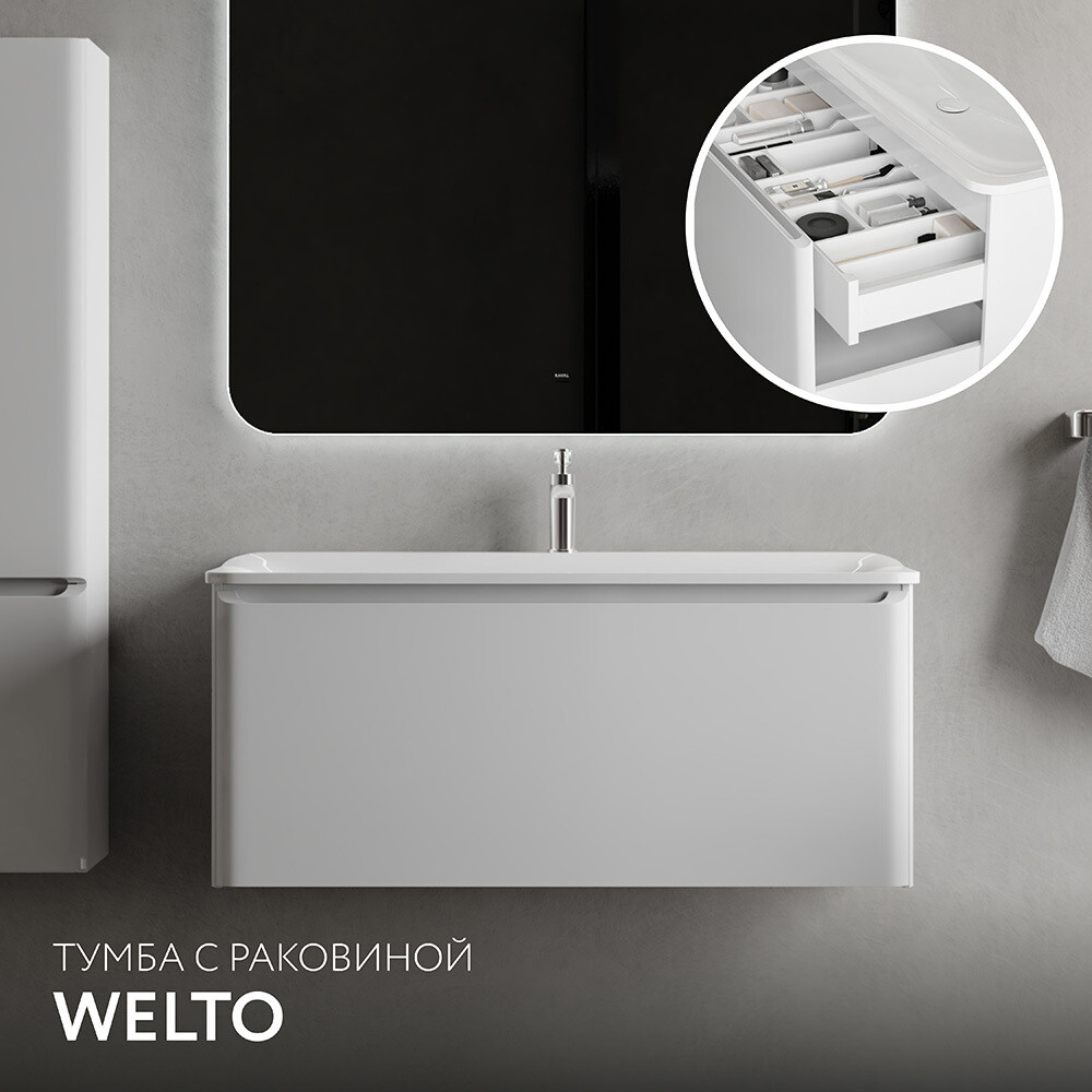 Комплект тумба с раковиной Raval Welto 100 см подвесная белая (Wel.01.100/P/W/RL)