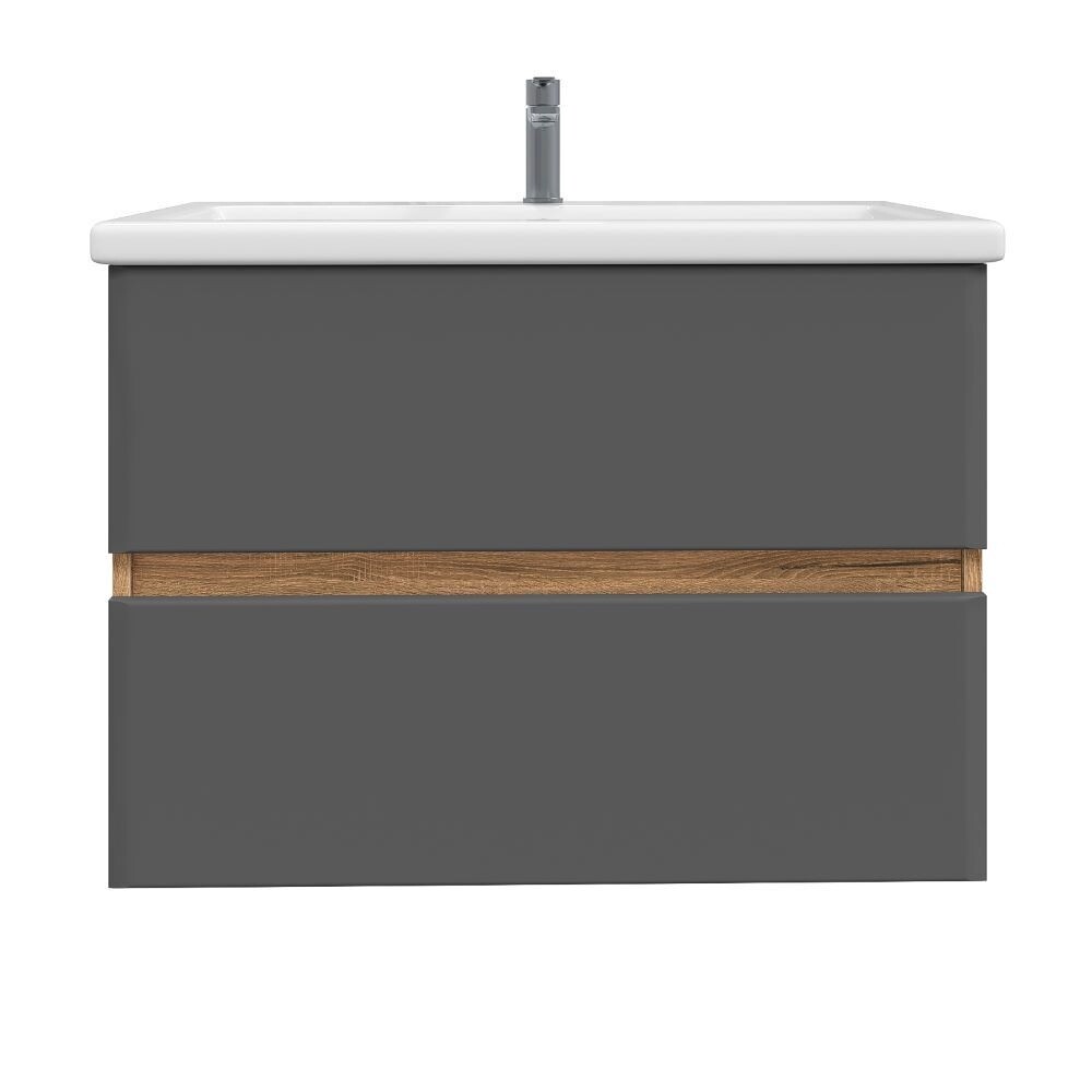 Комплект тумба с раковиной Sanstar Graffa 70 см подвесная дуб вотан/графит софт (452.1-1.4.1.ККОМ)