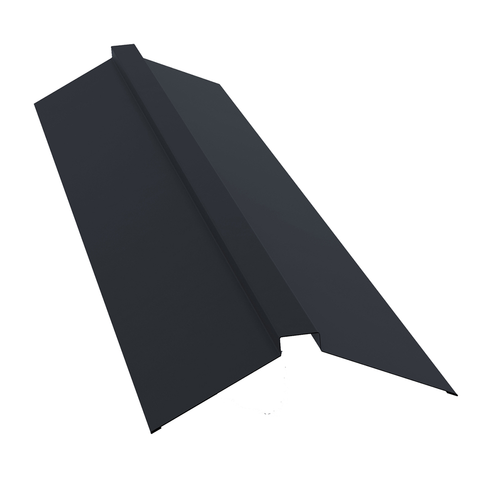 Главная / Каталог / Стройматериалы / Кровля, водосточные системы / Металлочерепица и комплектующие / Доборные элементы для кровли из металлочерепицы / Конек для металлочерепицы 115х30х115 мм 2 м плоский с пазом графитово-серый RAL 7024