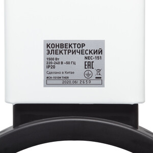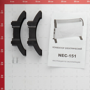 Комплектация: Конвектор электрический в сборе – 1 шт., ножка опорная пластмассовая – 2 шт., винты для крепления ножек – 4 шт.