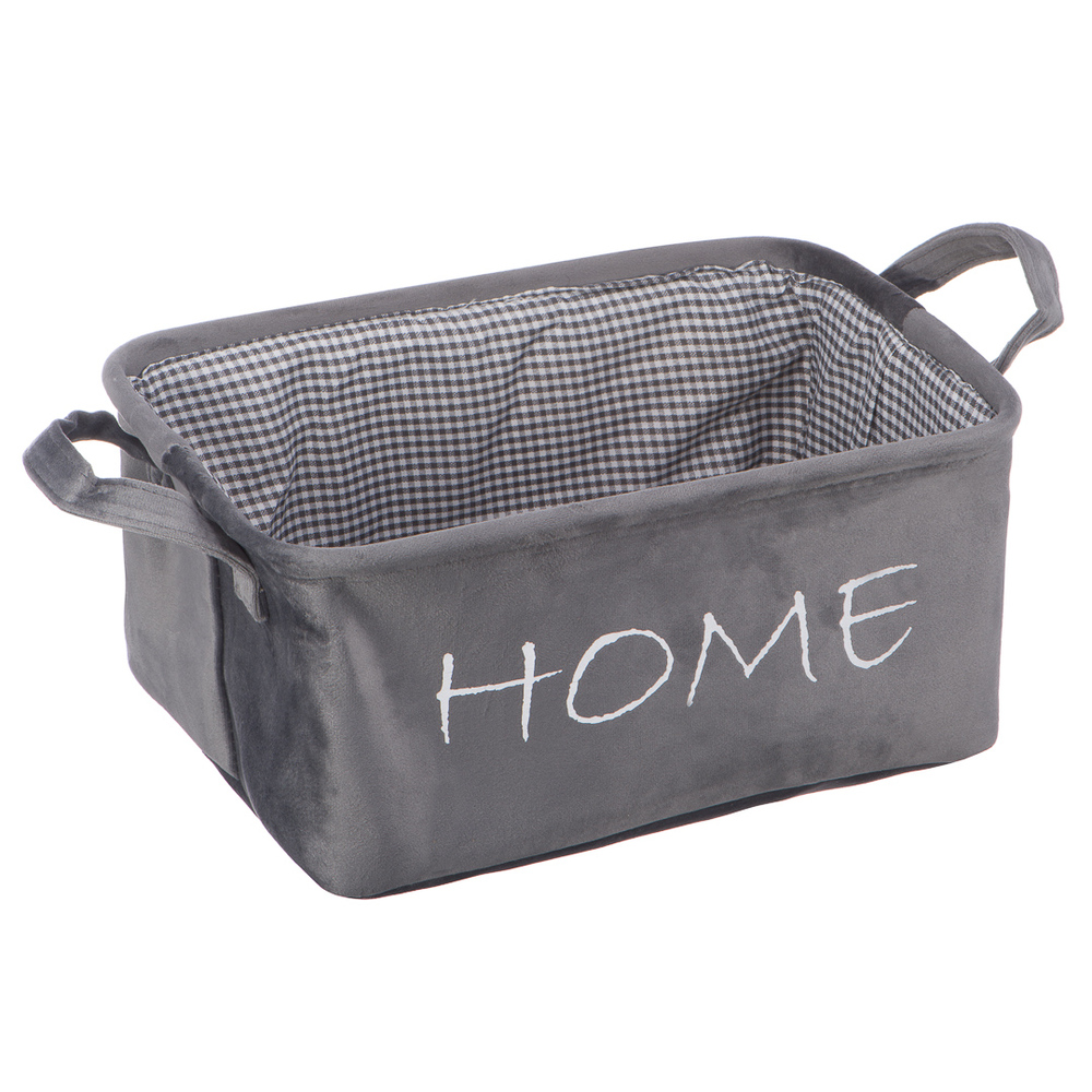 Стильная велюровая корзинка от Handy Home в универсальном сером цвете гармонично дополнит интерьер и поможет навести порядок на полках стеллажа или шкафа.