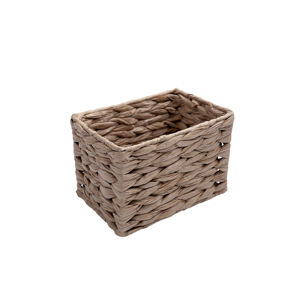 Плетеная стеллажная корзина прямоугольной формы станет прекрасным дополнением интерьера и отличным функциональным решением для хранения вещей. Корзина сплетена из скрученной в жгуты бумаги, что визуально похоже на плетение из водного гиацинта.