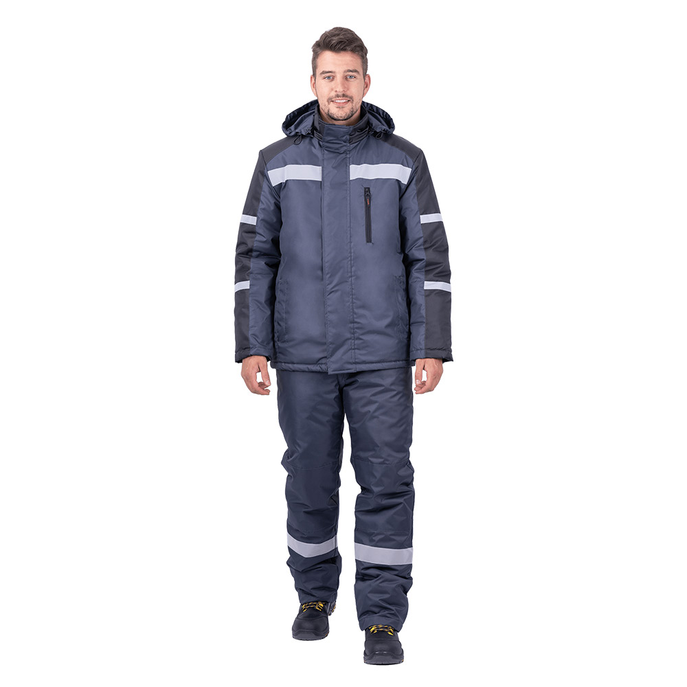 Костюм состоит из куртки и полукомбинезона. В костюме используется световозвращающая полоса 50 мм.