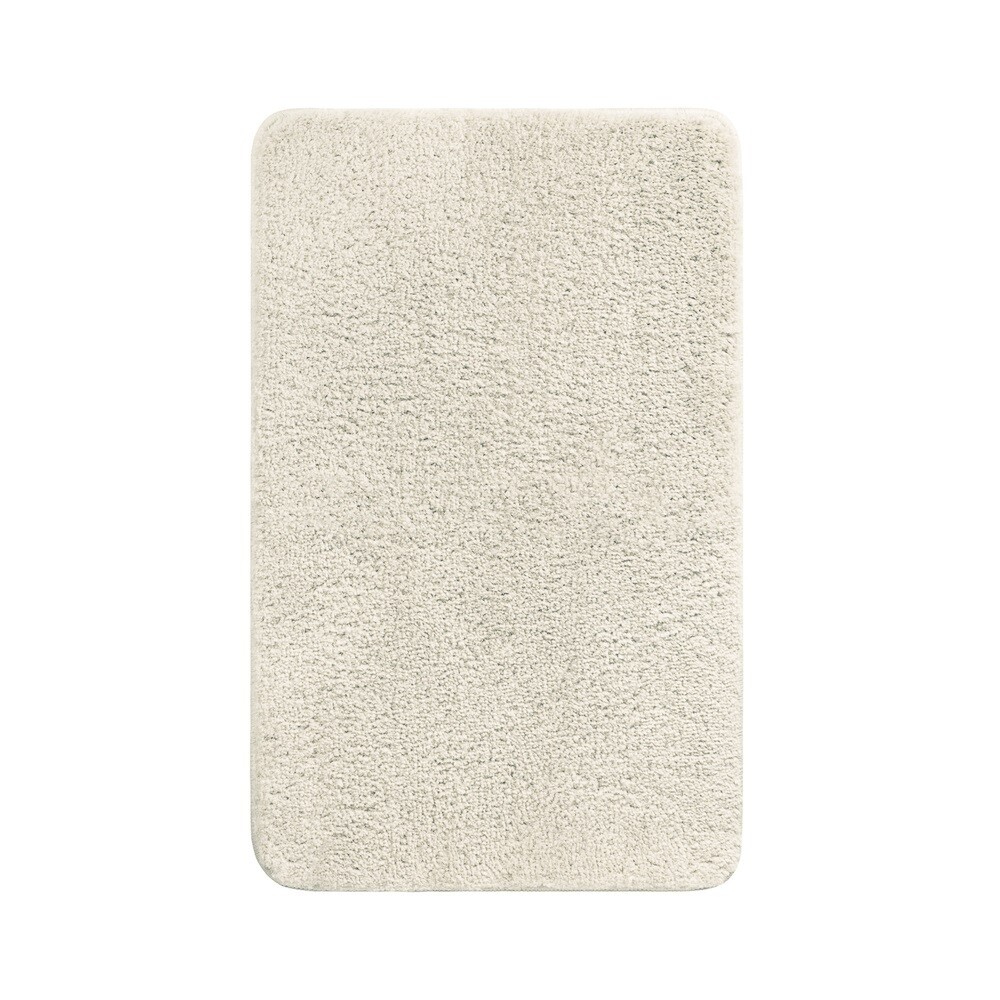 Мягкий коврик для ванной бежевого цвета с плотным, невысоким ворсом (2 см), приятный на ощупь. Ворс из микрофибры отлично держит форму, легко чистится и быстро сохнет.