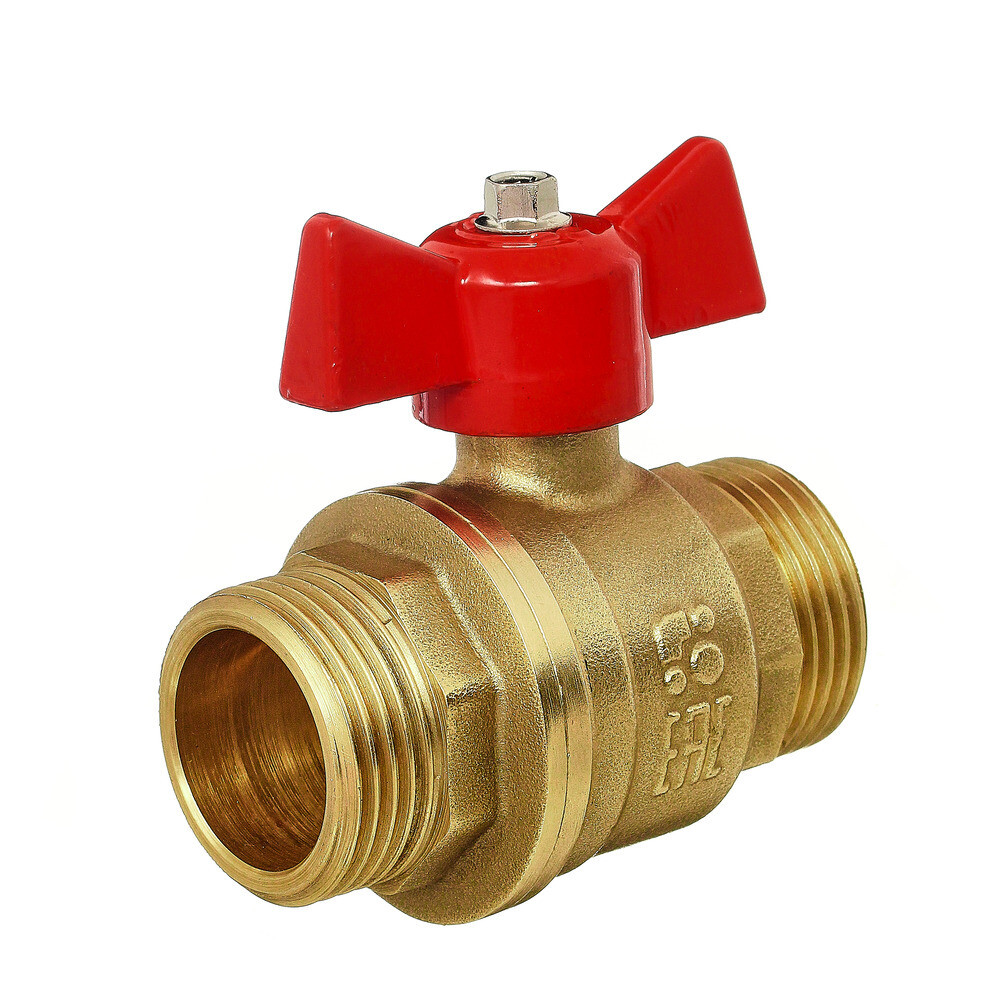 Кран шаровой латунный БАЗ Standart 1 НР(ш) х 1 НР(ш) проходной бабочка прямой (БАЗ.А32.1.25.40)