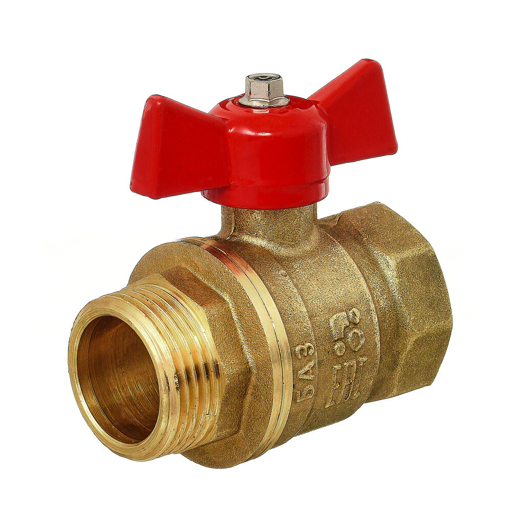 Кран шаровой латунный БАЗ Standart 3/4 ВР(г) х 3/4 НР(ш) проходной бабочка прямой (БАЗ.А31.1.20.40)
