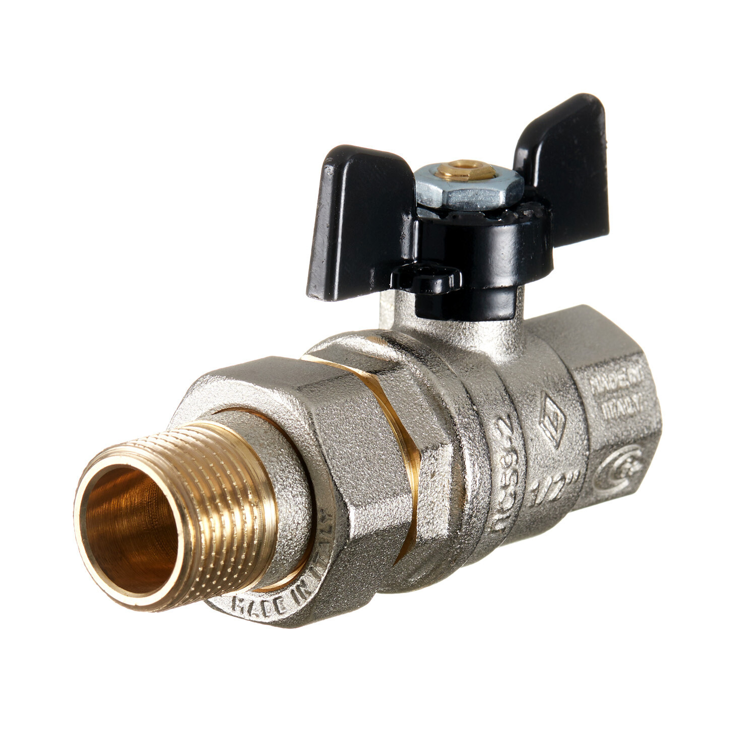 Кран шаровой латунный Bugatti 1/2 ВР(г) х 1/2 НР(ш) бабочка с полусгоном прямой (3220088)