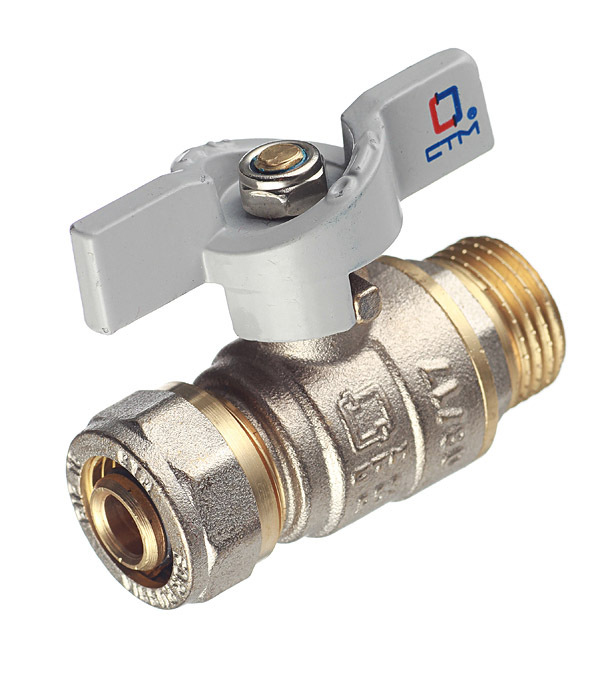 Кран шаровой латунный СТМ 16 обж(ц) х 1/2 НР(ш) для металлопластиковых труб бабочка прямой