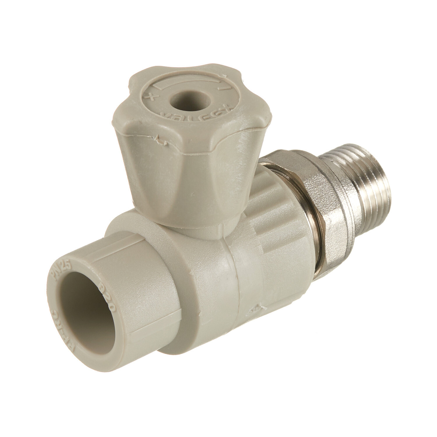 Кран шаровой полипропиленовый Valfex 20 мм х 1/2 НР(ш) с американкой прямой серый (10149020Г)