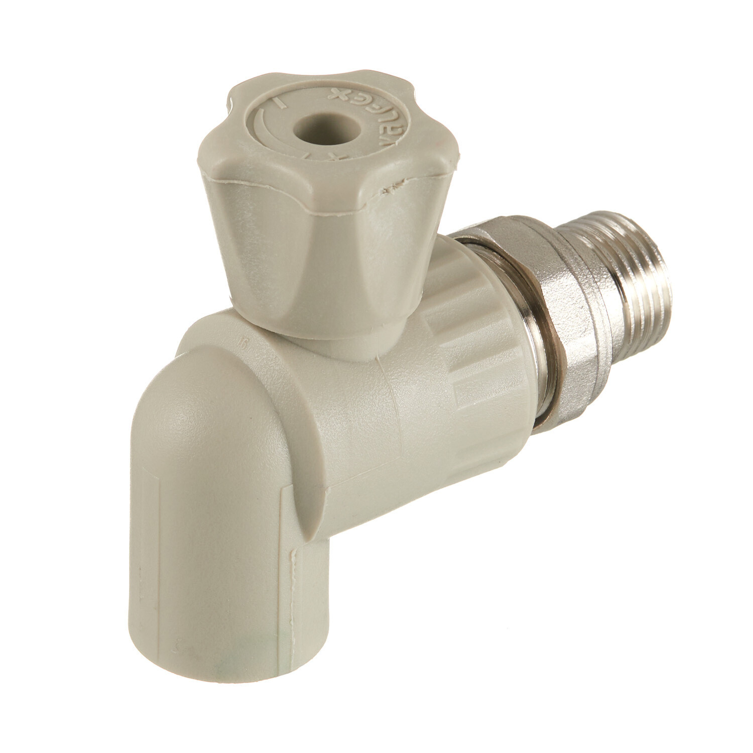 Кран шаровой полипропиленовый Valfex 20 мм х 1/2 НР(ш) с американкой угловой серый (10148020Г)