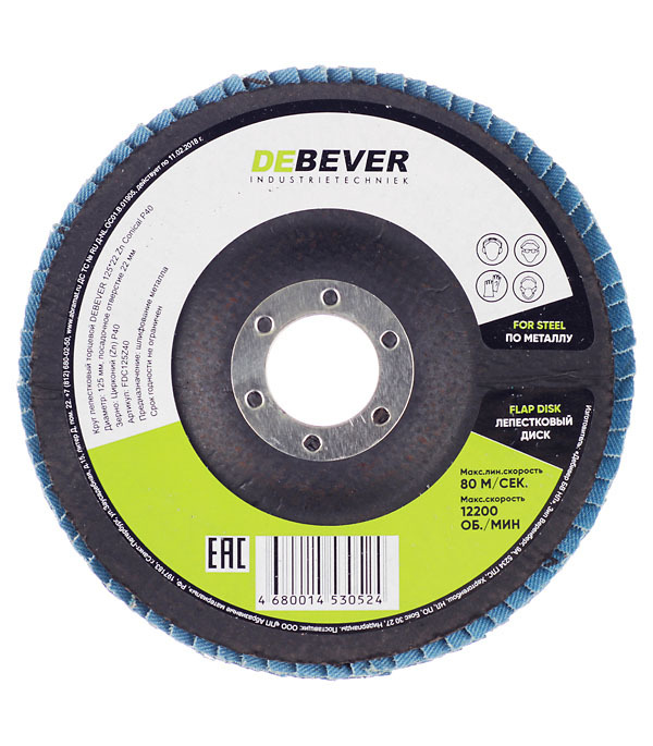 Круг лепестковый по металлу/древесине Debever 125х22,2 мм P40 торцевой (FDC125Z40/524)