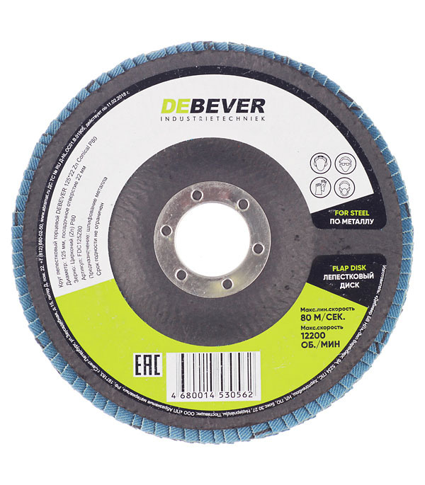 Круг лепестковый по металлу/древесине Debever 125х22,2 мм P80 торцевой (FDC125Z80/562)