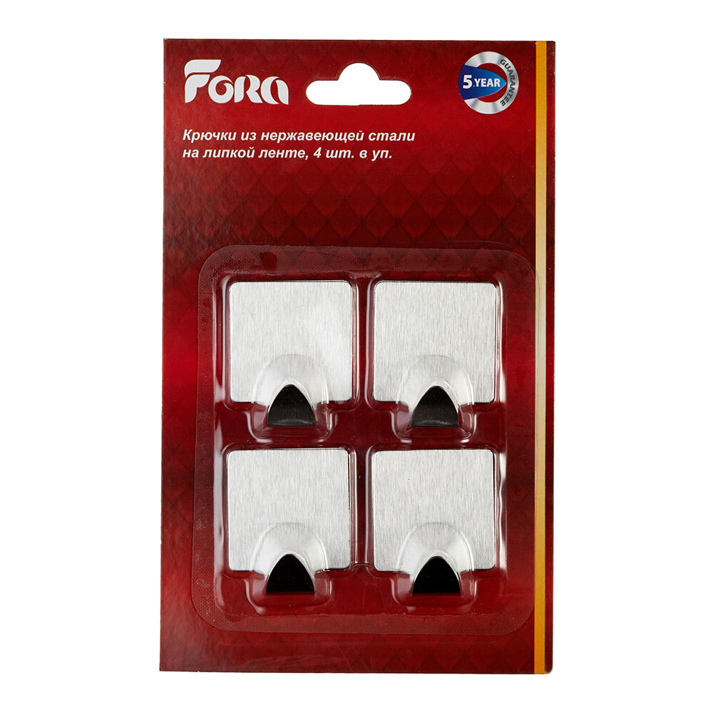 Крючок для ванной Fora одинарный самоклеящийся металл хром (4 шт.) (H44/9080)