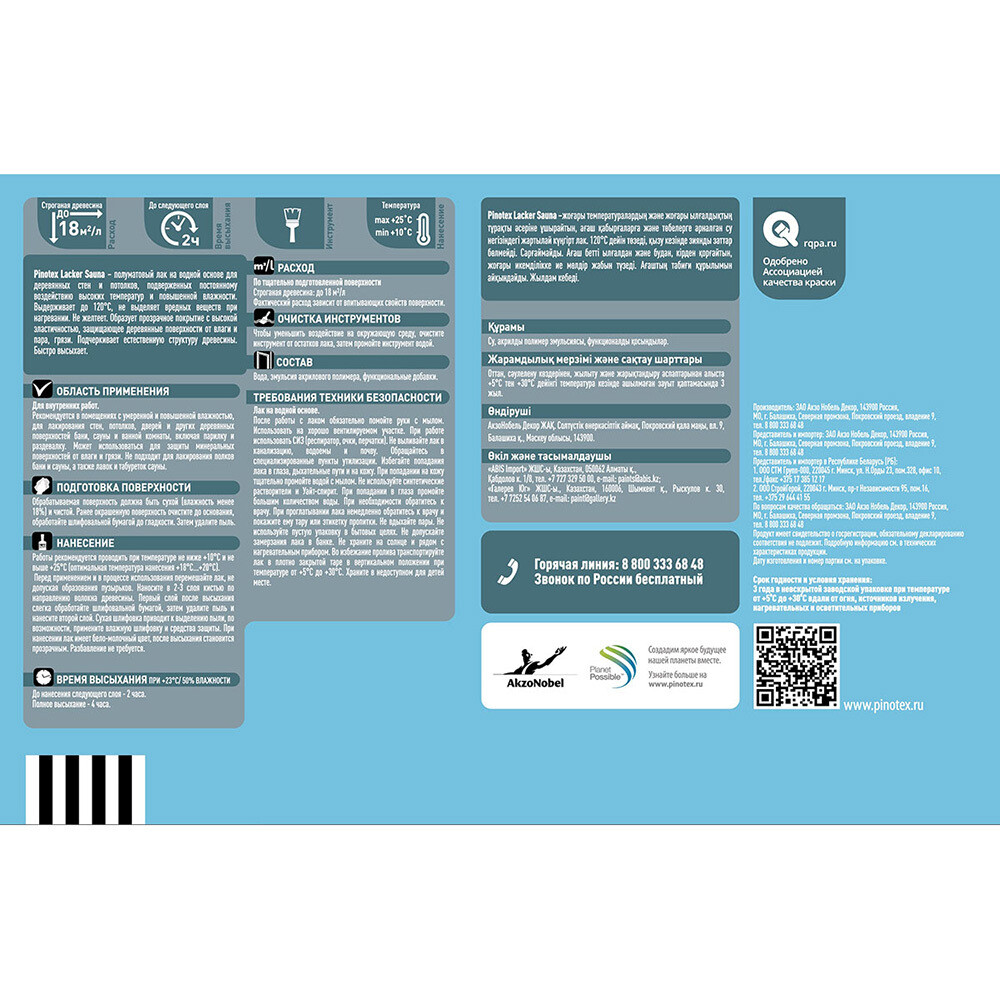 НЕ подходит для лакирования поверхностей, непосредственно соприкасающихся с человеческим телом (полок, лавок, табуретов и т. п.), а также ламинированных поверхностей, не использовать для пола.