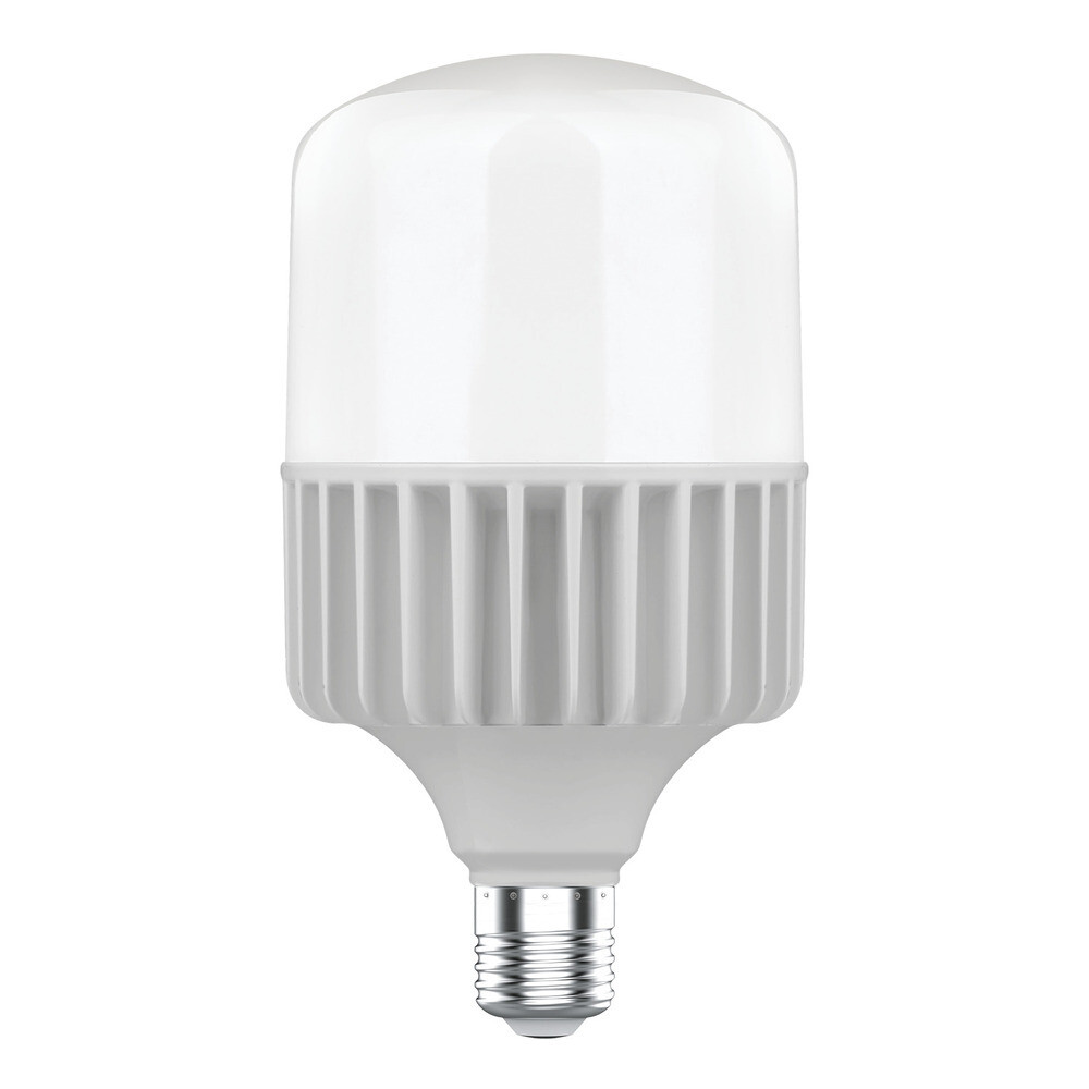 Лампа светодиодная с типом цоколя E40 обладает мощностью 80 Вт и обеспечивает холодный белый свет с цветовой температурой 6500 K. Срок службы данного устройства составляет 25000 ч, что значительно превышает параметры традиционных ламп накаливания. Это делает ее идеальным решением для помещений, где требуется надежное и долговечное освещение.
