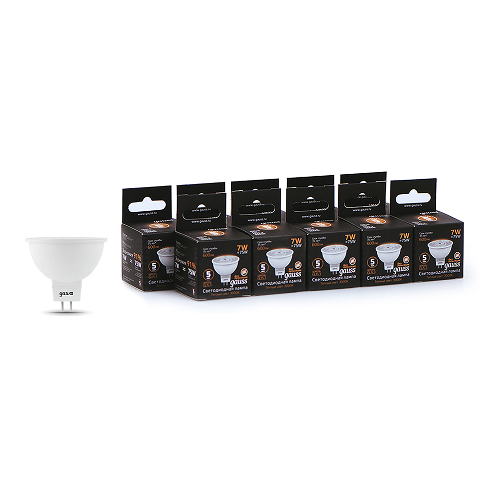 Лампа светодиодная Gauss GU5.3 3000К 7 Вт 600 Лм 150-265 В рефлектор MR16 (10 шт.)