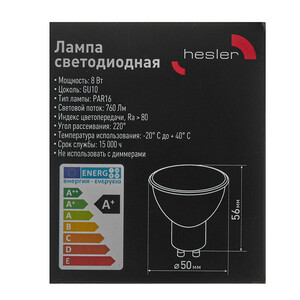 Лампа светодиодная Hesler GU10 2700К 8 Вт 760 Лм 230 В рефлектор PAR16 матовая