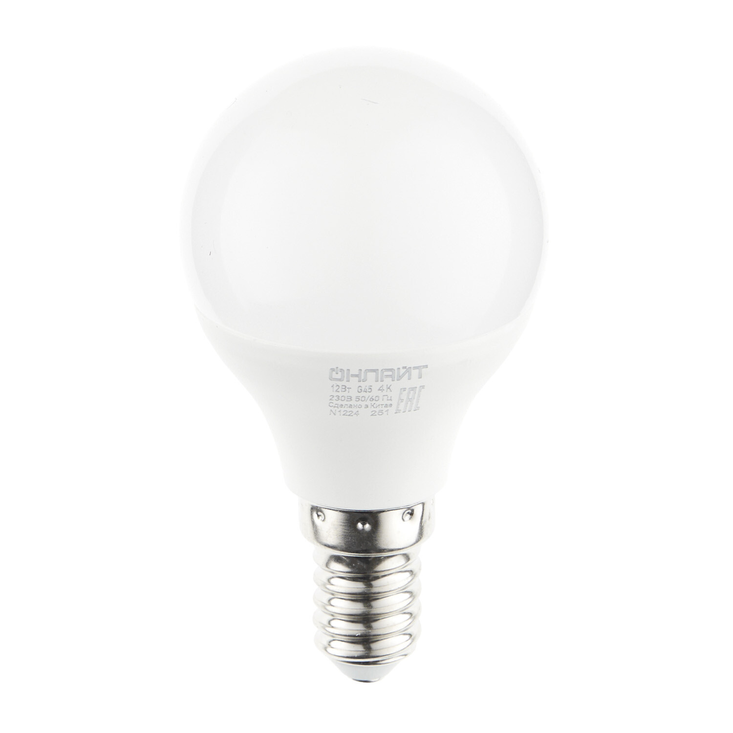 Лампа светодиодная Онлайт E14 4000К 12 Вт 860 Лм 220-240 В шар матовая