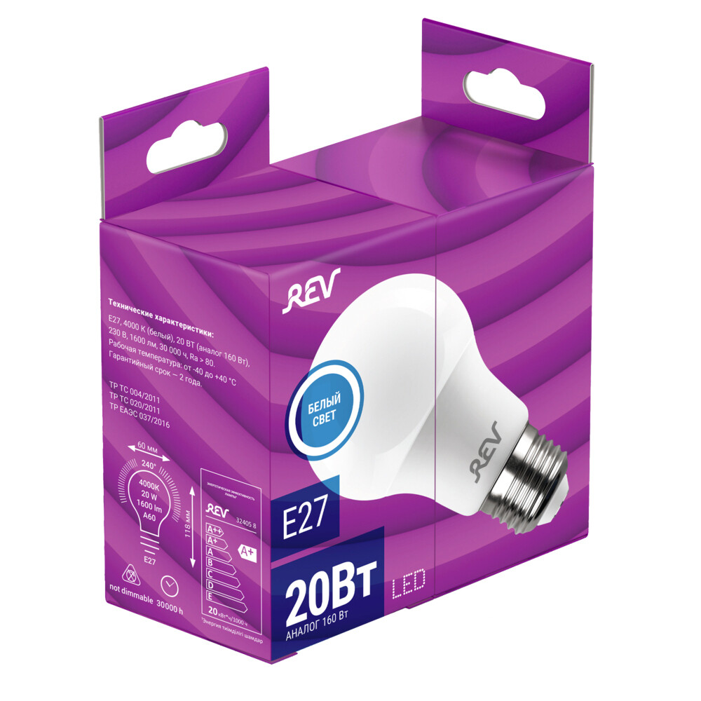 Лампа светодиодная Rev E27 4000К 20 Вт 1600 Лм 180-240 В груша A60 матовая