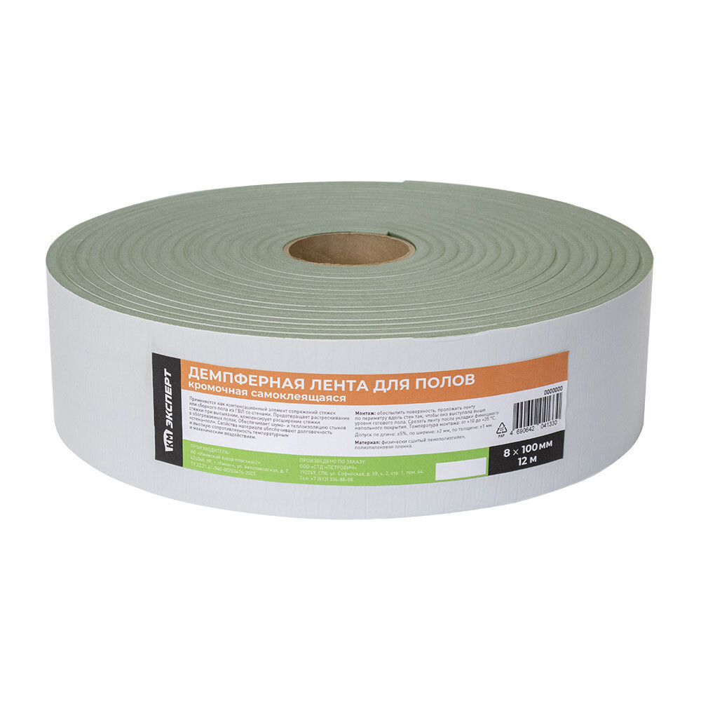 Лента демпферная кромочная для полов КМ Эксперт самоклеящаяся 8х100 мм 12 м