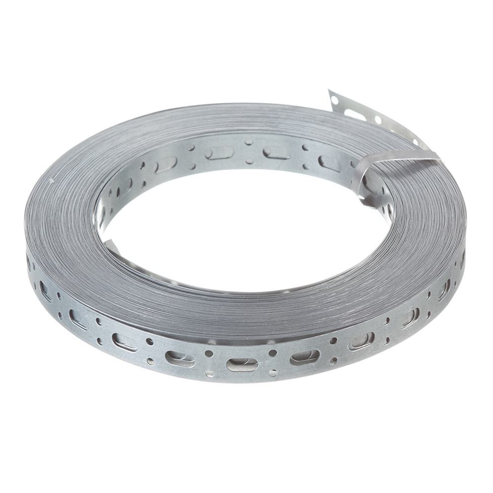 Монтажная лента оцинкована, что обеспечивает ей антикоррозийную устойчивость. Имеет овальные и круглые отверстия по всей длине.