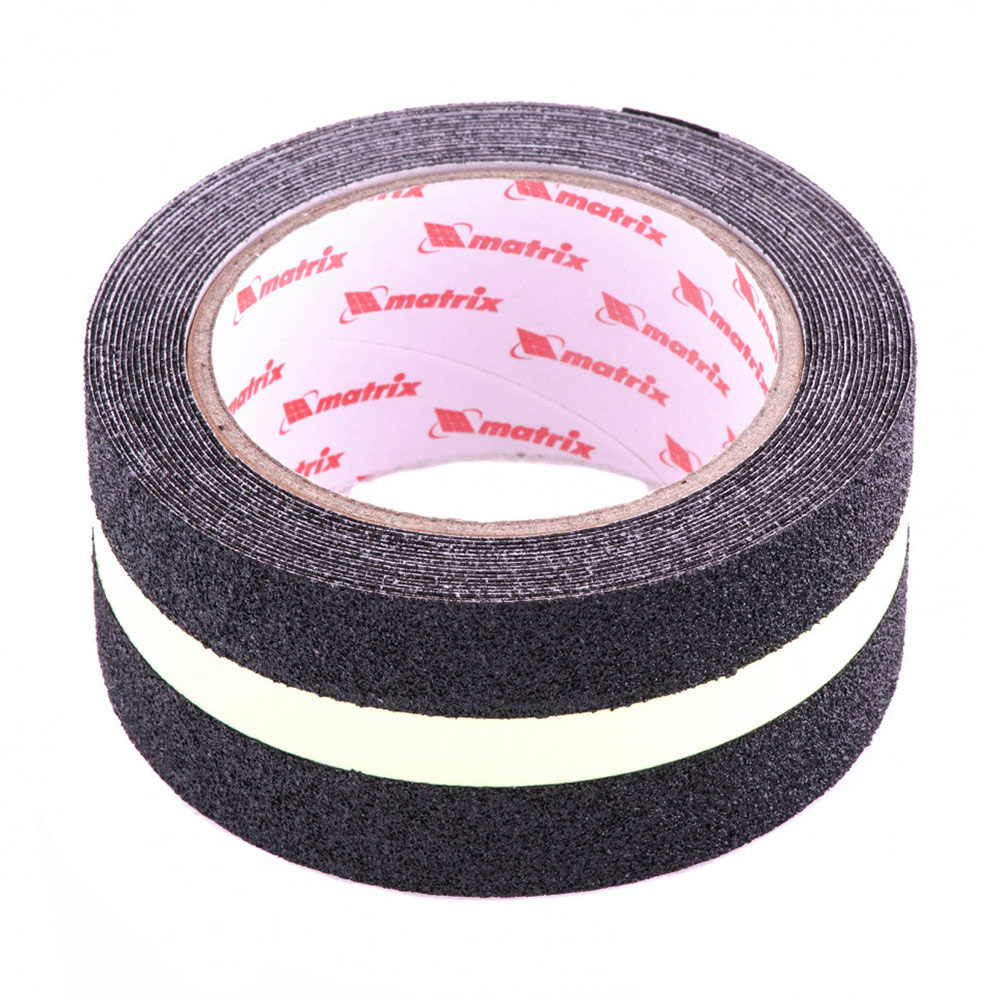 Лента противоскользящая Matrix с фотолюминисцентной полосой черная 50 мм 5 м