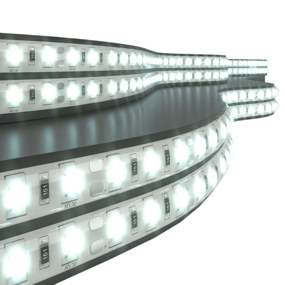 Светодиодная лента 12 В используется для декоративно-интерьерной подсветки в помещениях с повышенной влажностью (кухни, ванные комнаты), а также на улице для установки под навесом, оформления рекламных вывесок, для создания световых композиций в современных интерьерах и экстерьерах. Лента поставляется в рулоне с припаянным выводом проводов с цветовым обозначением для удобного подключения. Длина ленты составляет 5 м. Светодиодную ленту можно укоротить, отрезав нужную часть в местах для реза, а при необходимости удлинить, используя коннекторы. Гибкость ленты и надежная клеевая основа позволяют устанавливать ленту на различные поверхности. Для подключения светодиодной ленты к сети питания используются понижающие трансформаторы, преобразующие 220 В переменного тока в 12 В постоянного тока (AC 220 — DC 12V). Светодиодная лента устойчива к негативному воздействию окружающей среды и может стабильно работать в широком температурном диапазоне от -25 до +55 C. Срок службы светодиодов составляет 50000 часов.