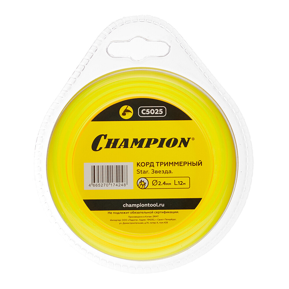 Леска для триммера Champion Star звезда 2,4 мм х 12 м желтая (C5025)