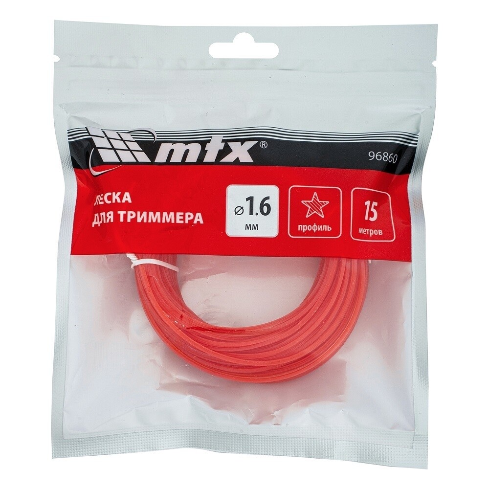Леска для триммера MTX с сечением «звезда», толщиной 1,6 мм и длиной 15 м предназначена для стрижки газонной травы, необходима для ухода за дачным участком. Используется в качестве расходного материала для электрических триммеров мощностью 300-600 Вт.