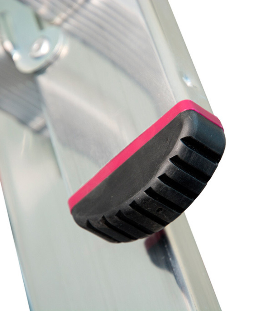 • имеет стальные широкие скобы, обеспечивающие плотный зажим выносных секций и прочные страховочные стяжки, предохраняющие лестницу от самопроизвольного раскладывания.