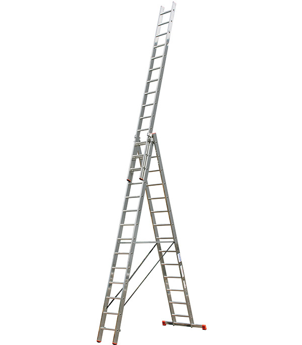 — лестница профессиональная алюминиевая 3-х секционная, в каждой секции 14 ступеней.