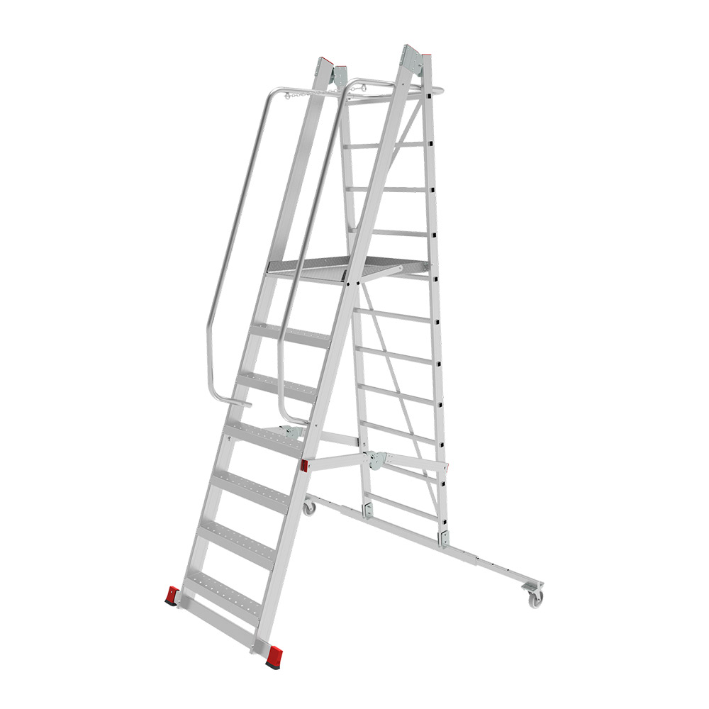 Предназначена для профессионального применения. Передвижная складная лестница-подмости с площадкой односторонняя предназначена для создания рабочего места на высоте 1,38–3,92 м.Идеальна для работы на складских стеллажах. Может применяться внутри и снаружи помещений.