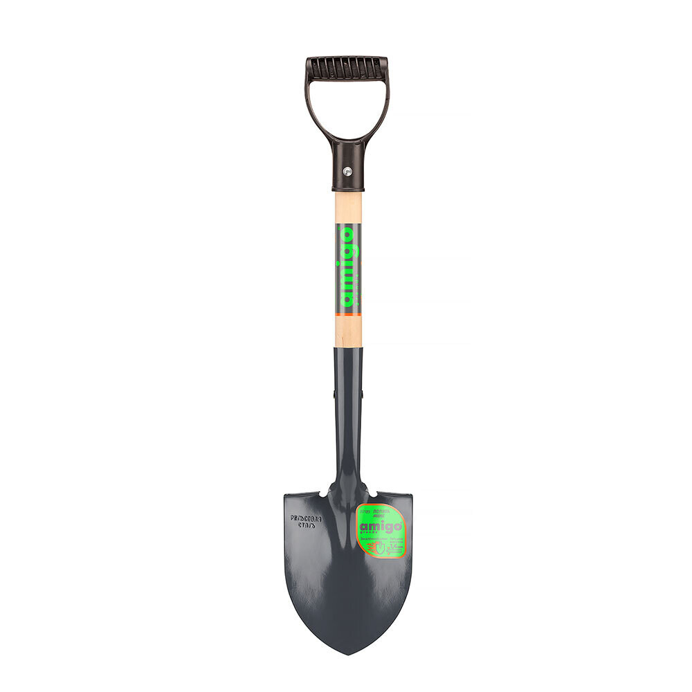 Лопата штыковая Amigo рельсовая сталь остроугольная с деревянным черенком 300 мм (77189)