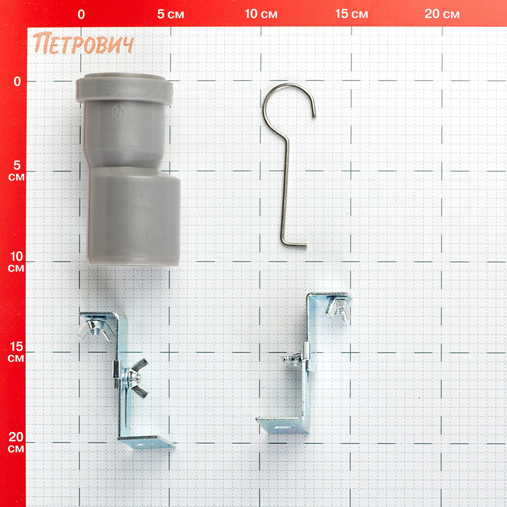 В комплекте имеет съемный гидрозатвор с сетчатой ловушкой, переходник для слива 40/50 мм, гидроизоляцию, регулировочные ножки, инструмент для снятия решетки.