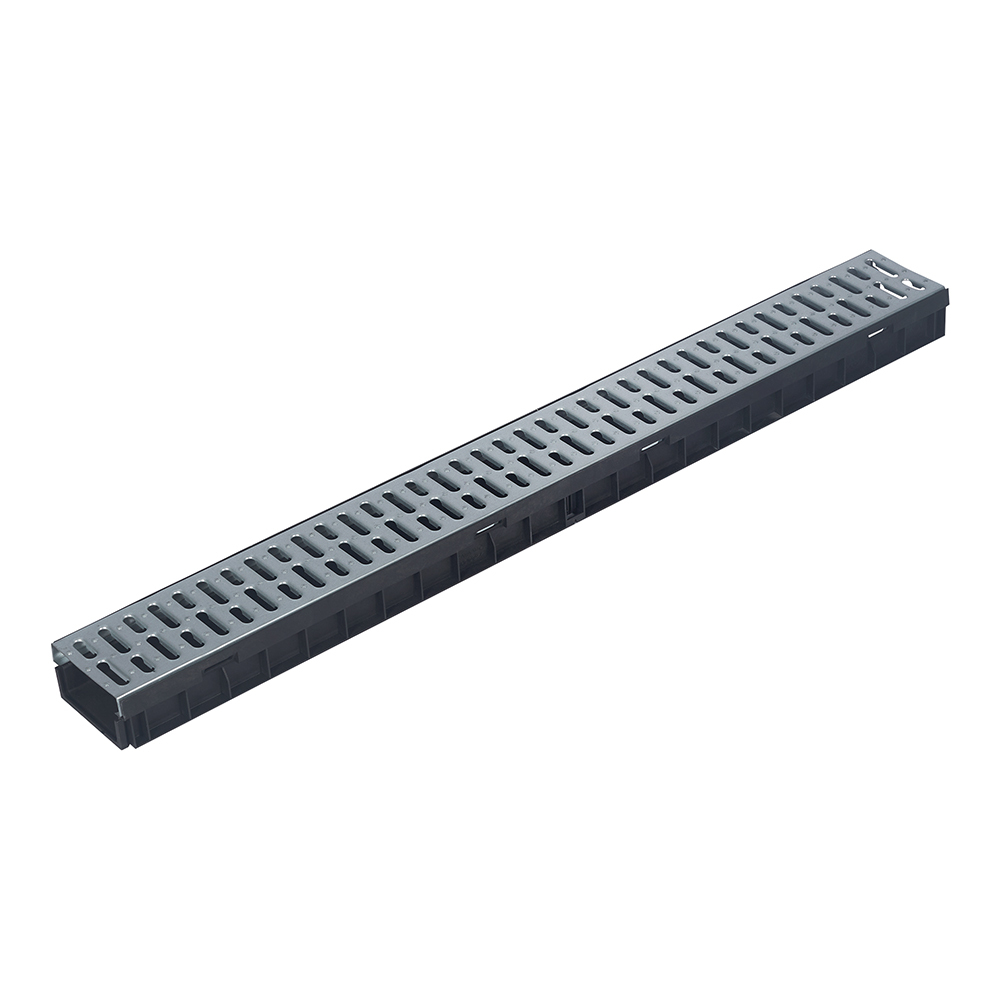 Лоток водоотводный пластиковый 1000х115х55 мм Gidrolica со стальной решеткой класс А15 (080096)