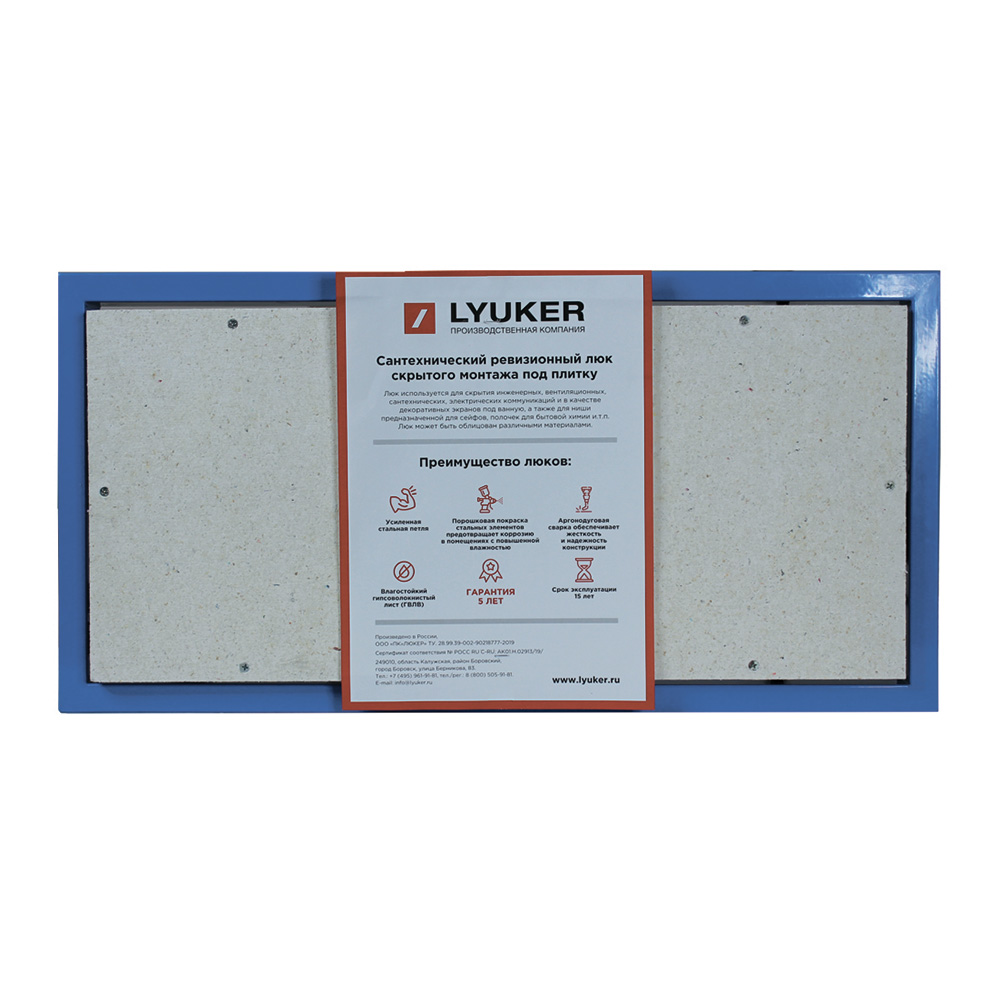 Люк ревизионный под плитку Lyuker К стальной 300х600 мм скрытый нажимной