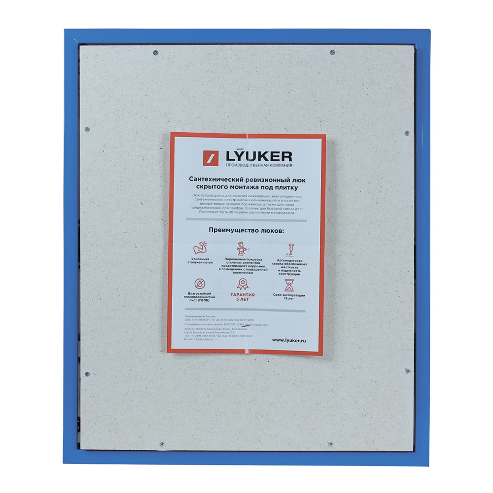 Люк ревизионный под плитку Lyuker К стальной 600х500 мм скрытый нажимной