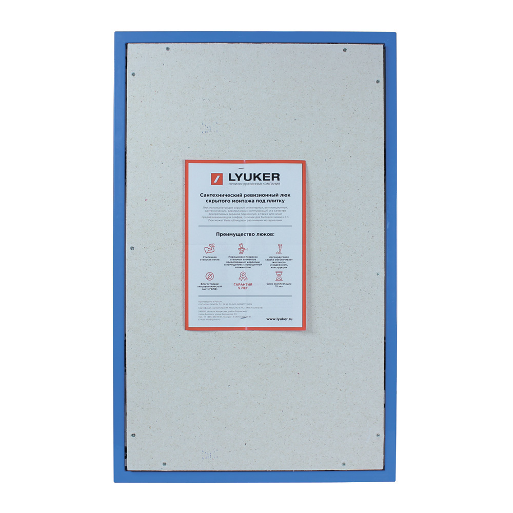 Предназначен для скрытия инженерных систем и коммуникаций в стенах с последующей облицовкой плиткой или иными отделочными материалами. Люк может быть установлен в гипсокартонные, кирпичные и блочные стены. Дверца люка имеет фронтальное открывание с вылетом петли до 8 см., для открывания дверцы требуется одновременное нажатие с правой и левой стороны в местах расположения защелок. Дверца утапливается на 2-3 мм до щелчков, затем защелки выталкивают ее вперед. Присоска требуется только для монтажа, в процессе эксплуатации люк открывать только нажатием.