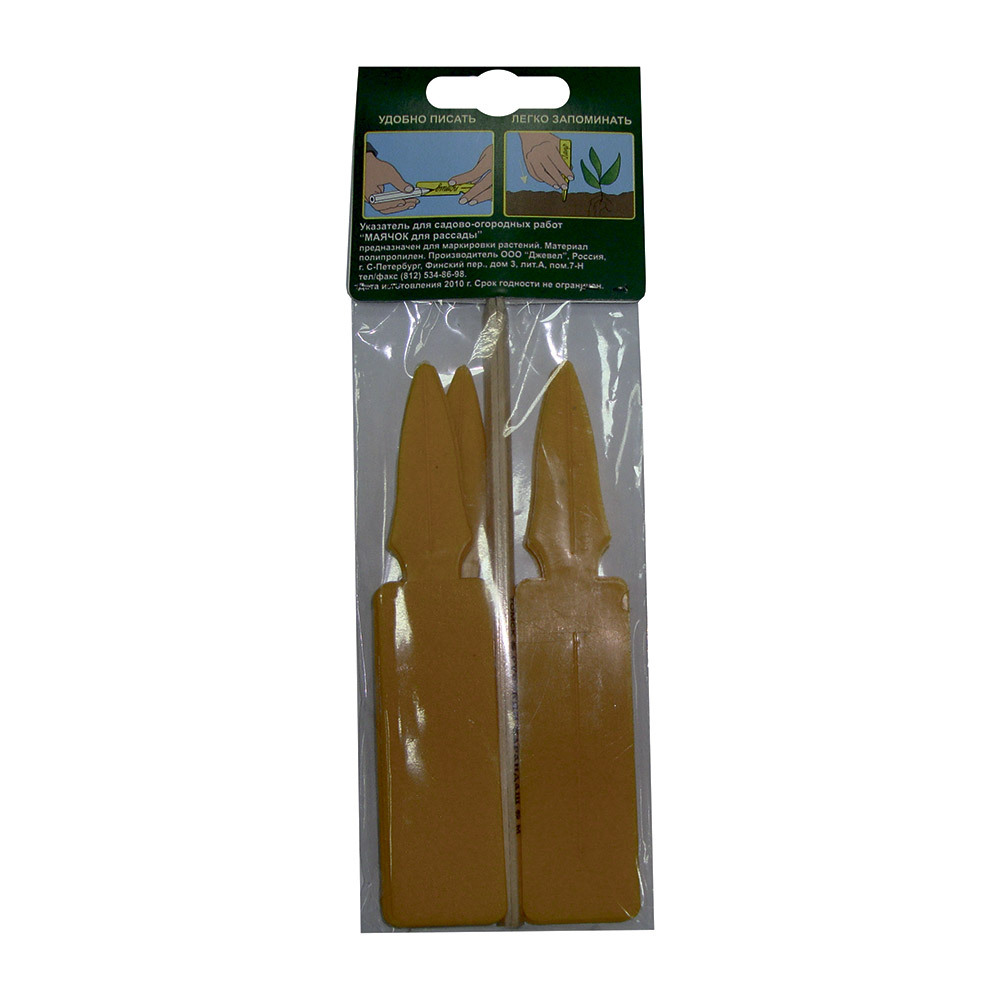 Пластиковые указатели помогут сохранить информацию о посадках. Предназначены для маркировки растений. Достаньте маячок из упаковки, напишите карандашом название сорта, воткните маячок в рассаду или на грядку, и маячок сохранит полезную информацию в течение всего сезона. В комплекте 10 пластиковых маячков и 1 карандаш. Упакованы в индивидуальный пакет, удобный для навески в магазине.