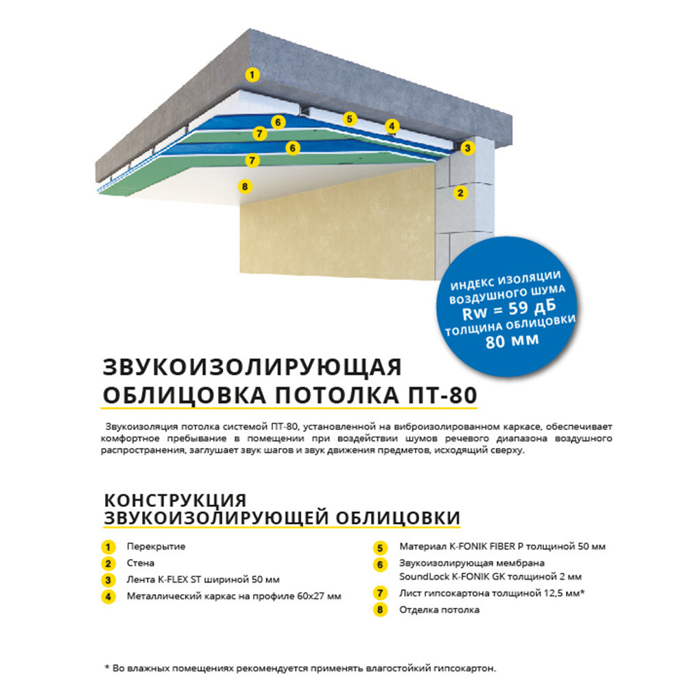 Звукоизоляционная самоклеящаяся мембрана SoundLock K‑FONIK GK AD 2 мм. Полимерный материал повышенной плотности для монтажа на ГКЛ, ГВЛ, ГКЛВ, песочные панели в межкомнатные перегородки, стеновые облицовки и потолочные конструкции. Мембрана не содержит битума, мела, формальдегидных смол, летучих компонентов и связующего. Специальные компоненты в составе обеспечивают значительное повышение звукоизоляции при минимальной толщине слоя. Отсутствие летучих веществ гарантирует долговечность, работоспособность мембраны свыше 10 лет и отсутствие неприятного запаха.