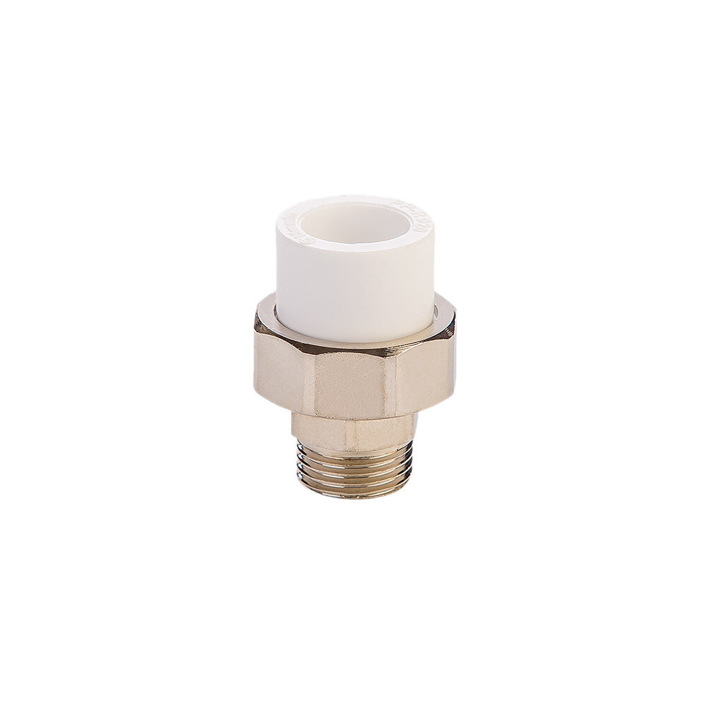 Муфта PPR разъемная с наружной резьбой соединяет трубы из полипропилена с одной стороны и из металла с другой в отопительных и водопроводных сетях с носителями в виде горячей или холодной воды. Этот фитинг также известен как «американка». Изделие отличается особой конструкцией разъемного типа. Она обеспечивает возможность быстро соединять и разъединять жесткую и гибкую линию, когда они являются частью коммуникации. Для подключения к трубе из полипропилена предусмотрен метод сварки, с другой стороны фиксация обеспечивается за счет резьбового соединения.