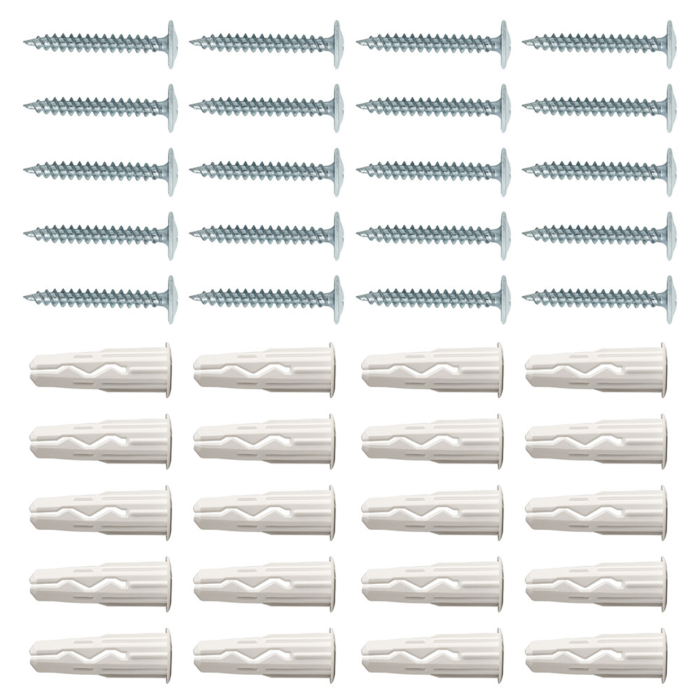Преимуществом комплекта является универсальный нейлоновый дюбель, который монтируется в любые стены — бетон, кирпич, гипсокартон, газобетон, пенобетон и обеспечивает надежное крепление в стене.